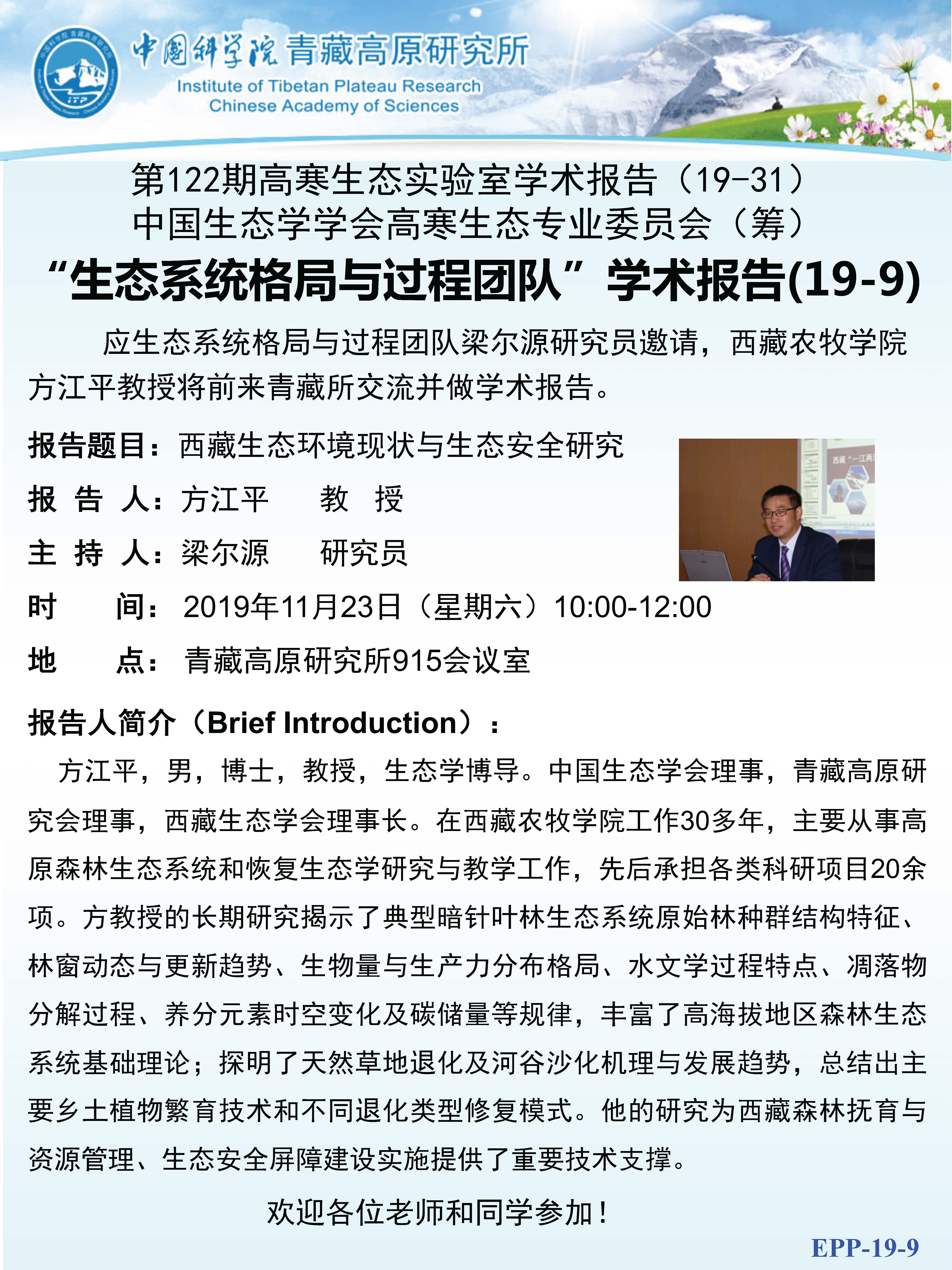 高寒生态重点实验室“生态系统格局与过程团队”学术报告(19-9)[2019.11.23]