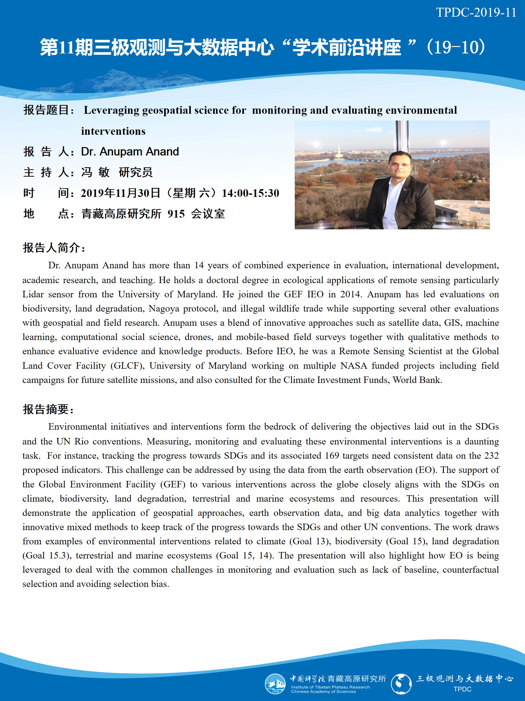 第11期三极观测与大数据中心“学术前沿讲座 ”(19-10)”