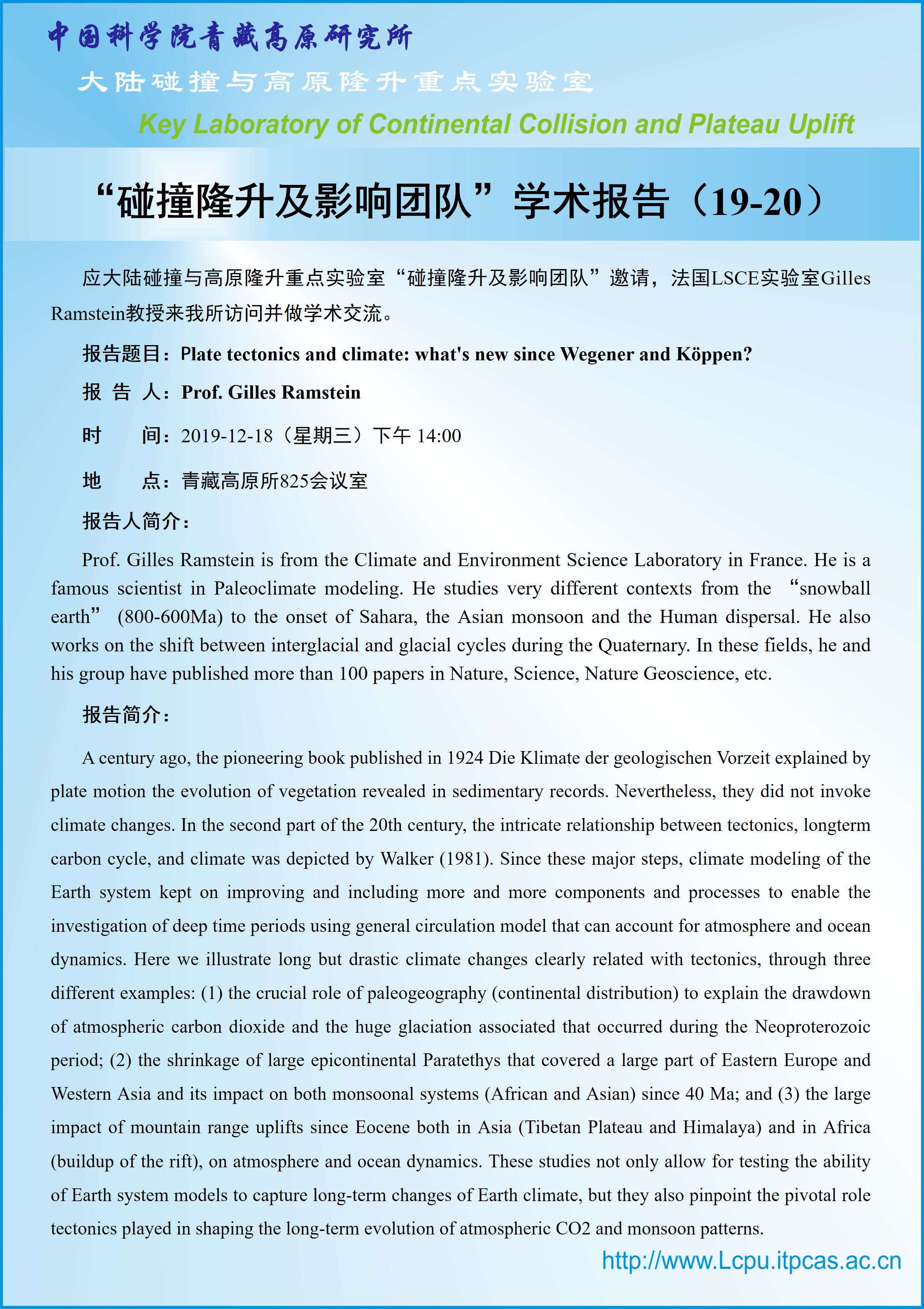 碰撞与隆升重点实验室“碰撞隆升及影响团队”学术报告(19-20)[2019.12.18]