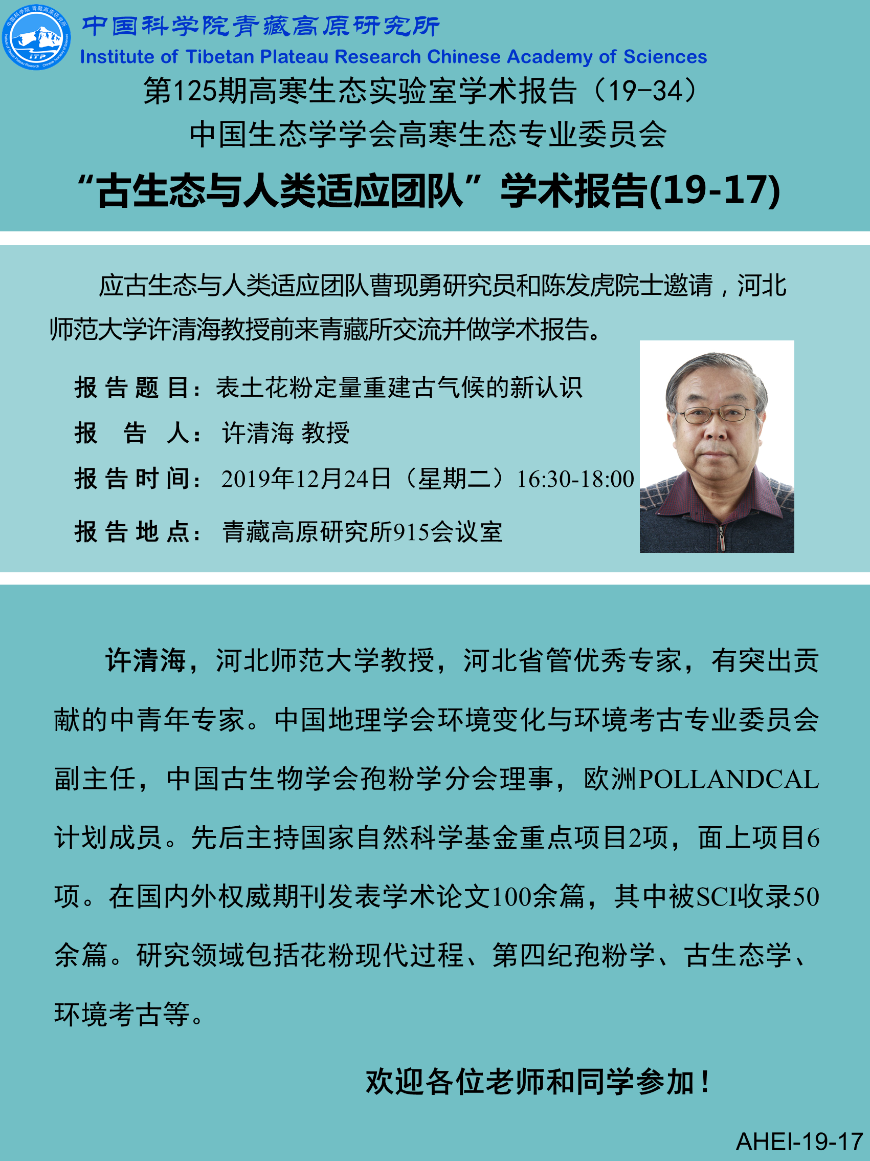 高寒生态重点实验室“古生态与人类适应团队”学术报告(19-17)[2019.12.24]