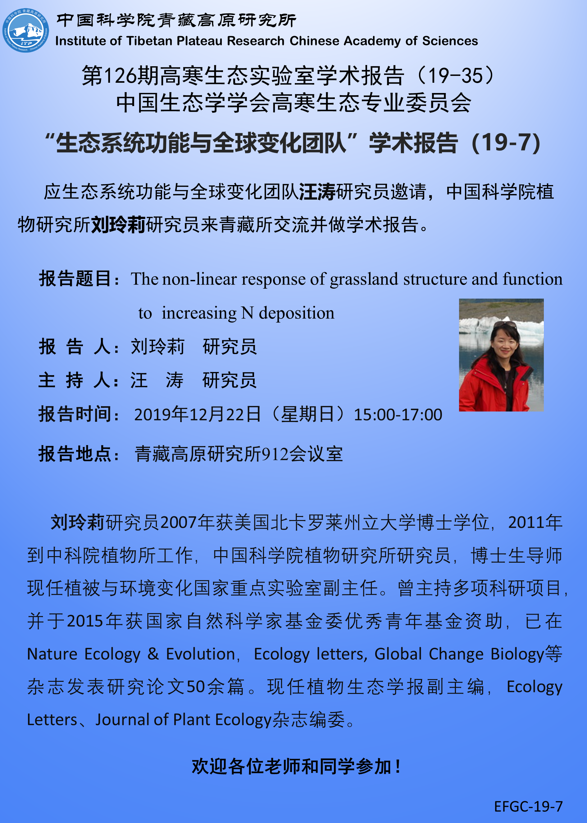 高寒生态重点实验室“生态系统功能与全球变化团队”学术报告(19-7)[2019.12.22]