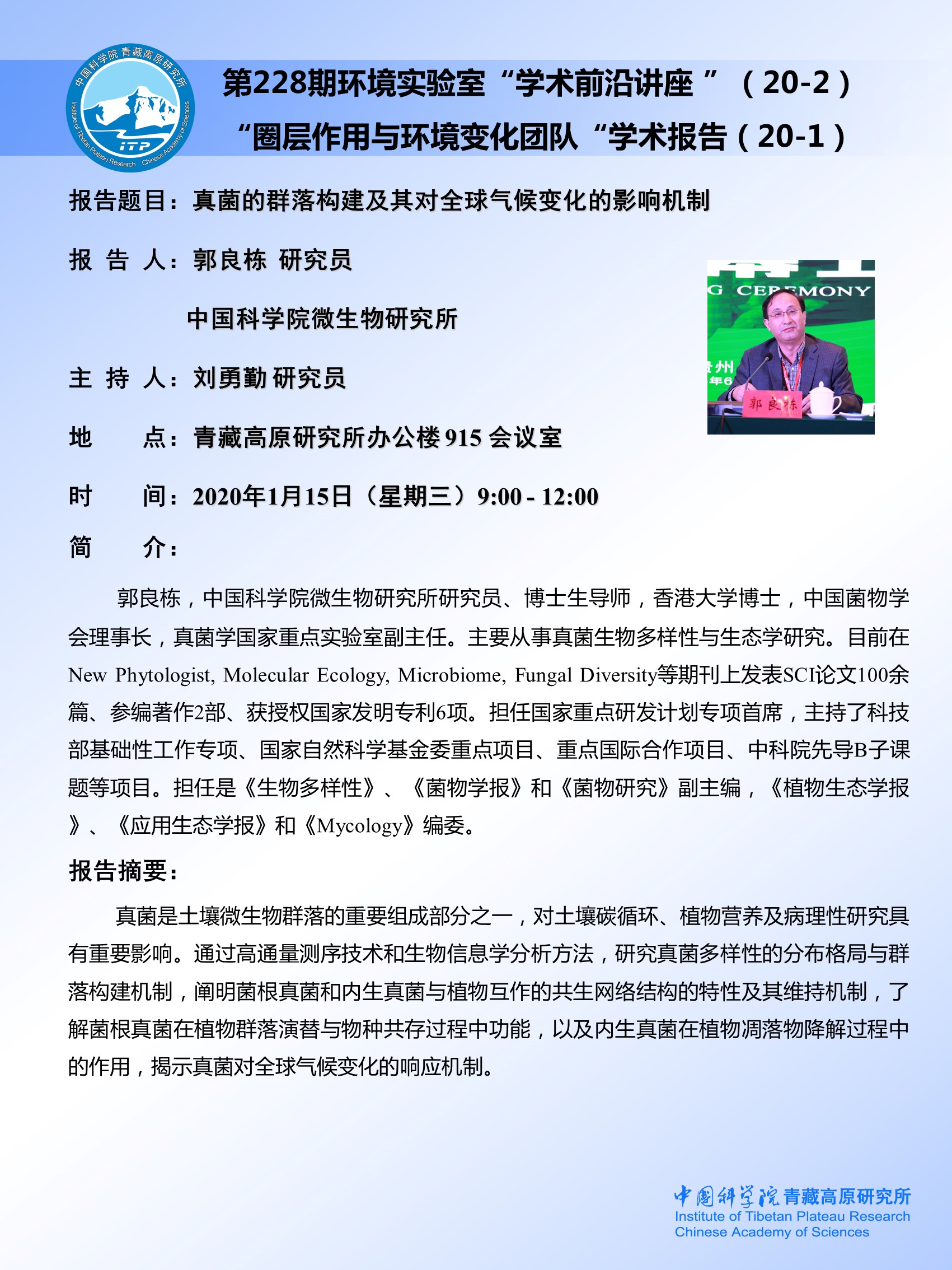 第228期环境实验室“圈层作用与环境变化团队”学术报告(20-1)[2020.1.15]