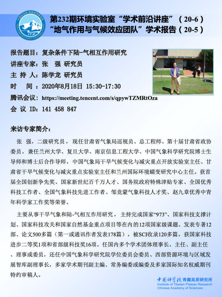 第232期环境实验室“地气作用与气候效应团队”学术报告(20-5) [2020.8.18]