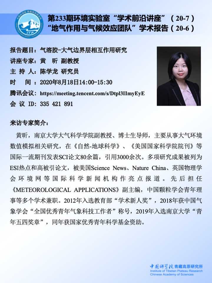 第233期环境实验室“地气作用与气候效应团队”学术报告(20-6) [2020.8.18]
