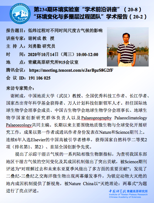 第234期环境实验室“学术前沿讲座”(20-8)| “环境变化与多圈层过程团队”学术报告(20-2)