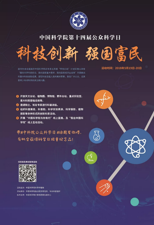 5月19日-20日,中国科学院在全国的百余个研究所举办“中国科学院第十四届公众科学日”。