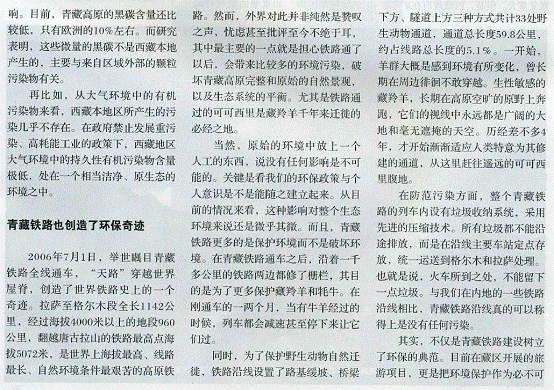 青藏铁路由于采取了严格、科学的环保措施,因此对环境影响微乎其微