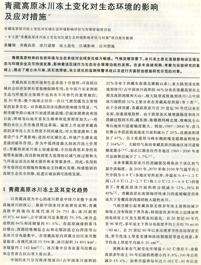 青藏高原冰川东突变化对生态环境的影响及应对措施