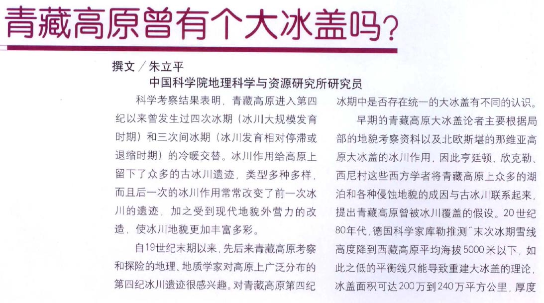 青藏高原曾有个大冰盖吗?