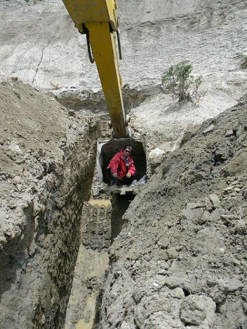 渐渐地他脱胎换骨了,肠胃变得通情达理,小肚子也不造反了,每天晚上安稳地睡在牛棚。当然,工作还是得继续。他此次野外的主要工作是对然乌地区冰湖古湖相沉积物(超过35m)、冰缘黄土的考察和采样。有一次他坐挖掘机的抓斗下到5米多深的探槽采样,忽然藏民在上面叽里呱啦大叫,他愣愣的没听懂,下意识的一个转身,一块大石头掉了下来。虽然有幸没被砸中,还是吓出了一身冷汗。