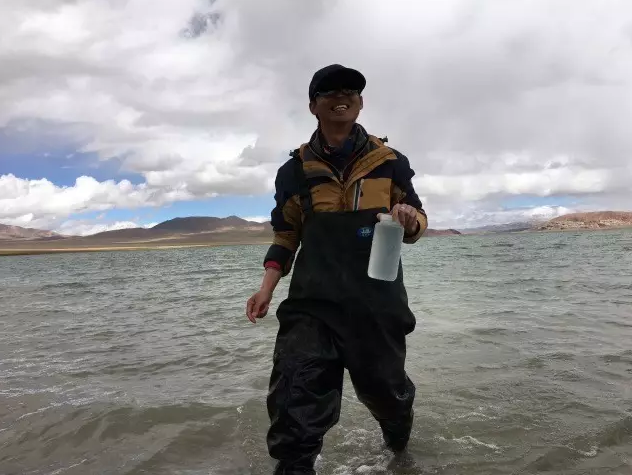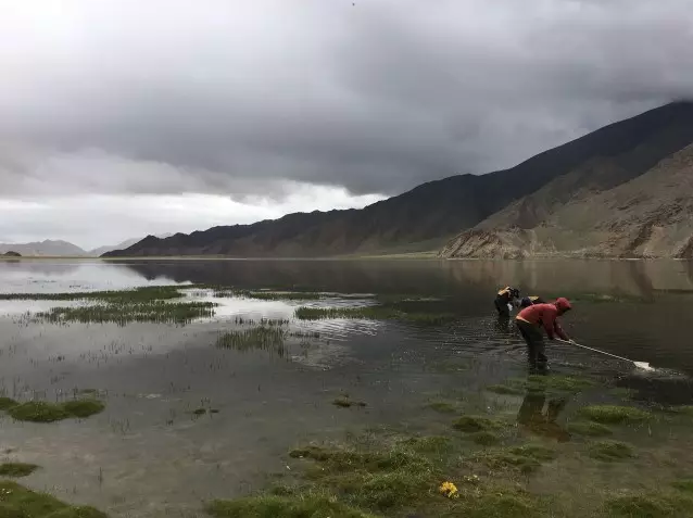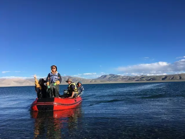 科考小组于2017年8月22日~9月8日期间,选择了海拔位于4200米到5200米的17个不同类型湖泊进行综合考察研究,测量了湖水水质、湖底地形、并采集了多种样品。队员们乘充气橡皮艇采集了浮游植物、浮游动物、底栖动物,用于研究湖泊生态系统和生物多样性;采集了湖水和表层沉积物样品,用于分析湖泊环境;采集了重力钻沉积物岩芯,用于研究过去数百年来气候、环境、生态系统、生物多样性和人类活动的变化。