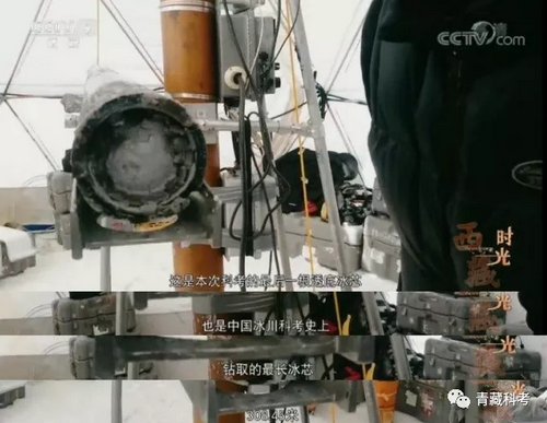 10月12日中午,终于打到了本次科考的最后一根透底冰芯,也是中国冰川科考史上钻取的最长冰芯:308.45米。
