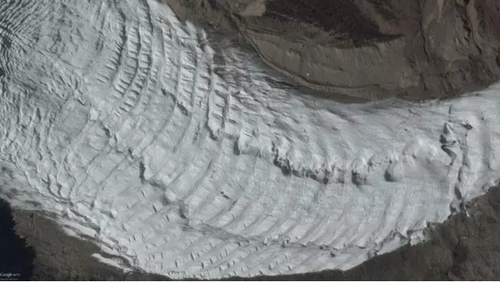 (俯视冰浪,米堆冰川,google earth, 朱海峰)