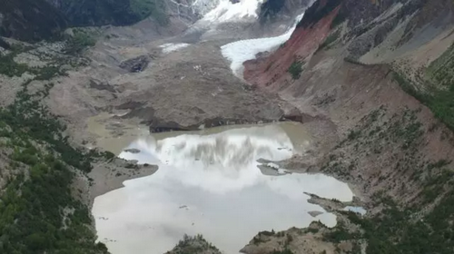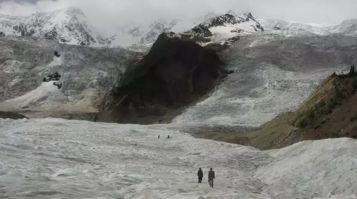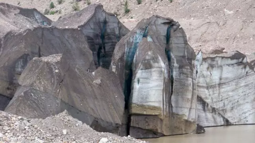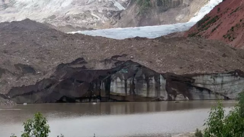 确切的说是被岩石或砂土这些表碛物覆盖了,而表碛物主要来自于两侧山体,还有一些来自冰川底部。