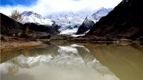 冰川、雪山倒映在冰湖里成为了游客镜头里的焦点。
