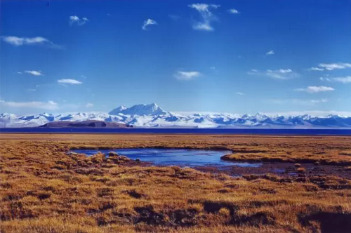 雪山、湖泊、草地相互辉映
