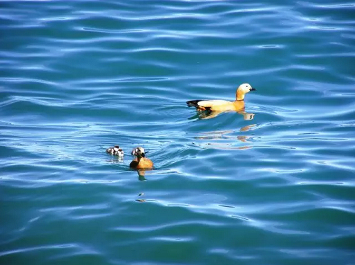 湖水中游荡的赤麻鸭