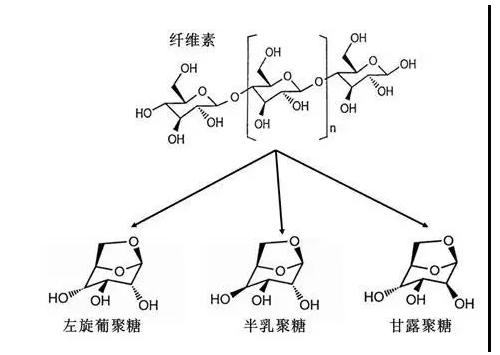 纤维素及其热裂解的三种主要产物左旋葡聚糖、半乳聚糖和甘露聚糖