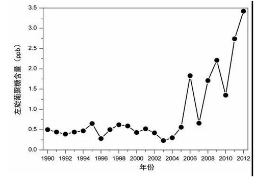科学家们通常利用冰芯中具有燃烧排放特征指示意义的化学成分得到过去的火变化信息。包括左旋葡聚糖在内的脱水单糖只来源于植物体的纤维素和半纤维素物质燃烧的热裂解过程,可以作为生物质燃烧排放研究的特征分子标志物。研究发现,青藏高原地区冰川雪冰中的左旋葡聚糖含量高于南北极地区。
