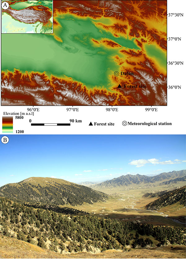近期,青藏高原研究所梁尔源研究员课题组(任平博士生为第一作者)在Annals of Botany杂志上发表了关于降水影响树木形成层活动开始时间的研究成果。该研究以青藏高原东北部都兰地区分布下限的祁连圆柏为研究对象,开展了为期3年(2009-2011年)的形成层活动监测。研究发现在温度满足的条件下,春季干旱能推迟树木形成层开始进行细胞分裂的时间。