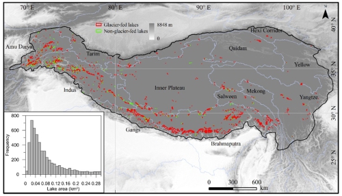 图1. 第三极地区冰湖分布
