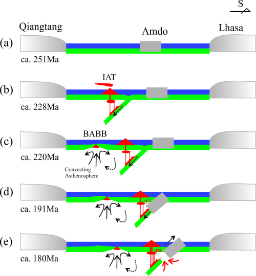 Chen, S.S., Shi, R.D., Zou, H.B., et al. Late Triassic island-arc–back-arc basin development along the Bangong–Nujiang suture zone (central Tibet): Geological, geochemical and chronological evidence from volcanic rocks. Lithos 230 (2015), 30-45.