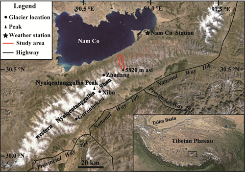 冰川对气候变化的响应非常敏感,其前进和后退所留下的地貌特征可以指示非常丰富的气候信息。通过这些地貌证据,重建冰川平衡线并且模拟冰川的物质平衡和冰川流动可以恢复古冰川的规模大小以及推测当时的古气候信息。这些研究工作在青藏高原还没有有效地开展,因此对高原上古冰川对气候响应的敏感性以及古冰川的规模(尤其是体积)的理解还非常有限。最近的冰川绝对年代学在高原上广泛开展起来,使得模拟古冰川以及从冰川地貌学角度推测古气候条件成为可能。我所易朝路课题组许向科副研与英国Aberystwyth大学Neil F. Glasser教授合作利用耦合的冰川物质平衡和流动模型在西念青唐古拉山爬玉王河谷开展了末次冰期两次冰川前进的模拟研究工作(图1)。