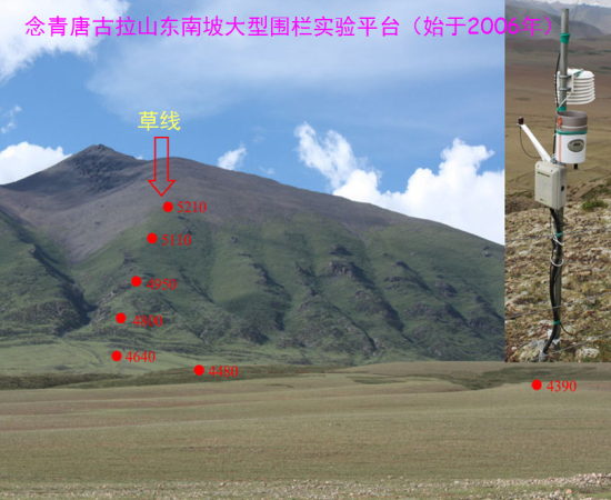 图1. 念青唐古拉山东南坡长期围栏实验平台(始于2006年)