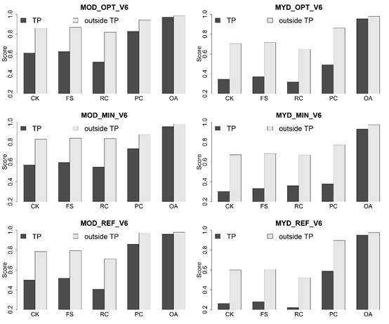 TP: Tibetan Plateau; CK:Cohen’s Kappa;FS:F-score;RC: recall; PC: precision; OA: overall accuracy。