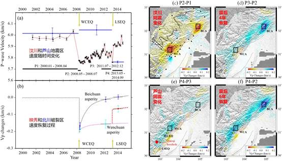 图1. 龙门山断裂带地震P波速度的演化过程 |
