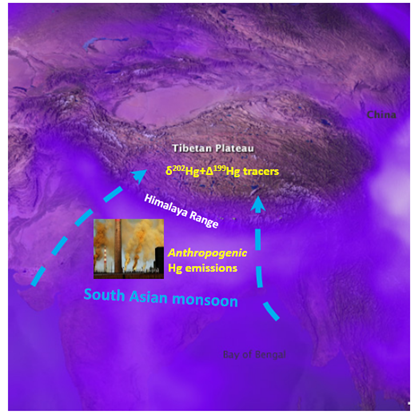 “非传统重金属稳定同位素”的研究是国际上同位素地球化学研究的前沿领域。作为一种新的地球化学示踪手段,近些年来“非传统重金属稳定同位素”的研究得到迅速发展。重金属污染是当今全球面临的严重环境问题,在所有的重金属污染元素中,汞(Hg)的毒性位居首列,备受政府和公众关注。因此,通过运用汞稳定同位素“指纹”开展汞污染跨境传输研究,为我们深入揭示汞污染物在第三极地区的生物地球化学循环规律开辟了新途径。