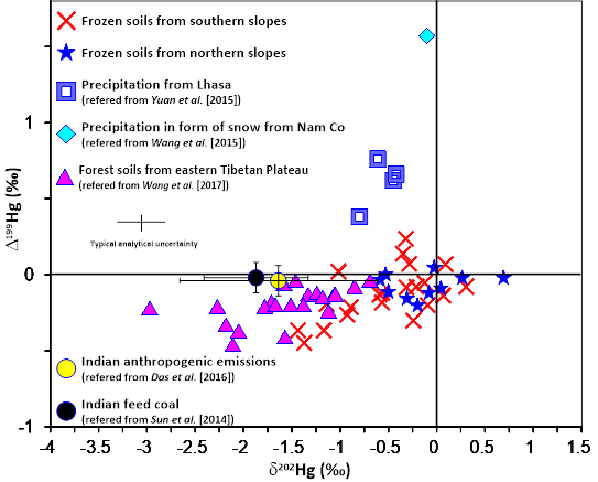 https://doi.org/10.1016/j.envpol.2019.113432, Huang, J., Kang, S., Yin, R., Guo, J., Lepak, R., Mika, S., Tripathee, L., Sun, S., 2020. Mercury isotopes in frozen soils reveal transboundary atmospheric mercury deposition over the Himalayas and Tibetan Plateau. Environmental Pollution 256, 113432)。