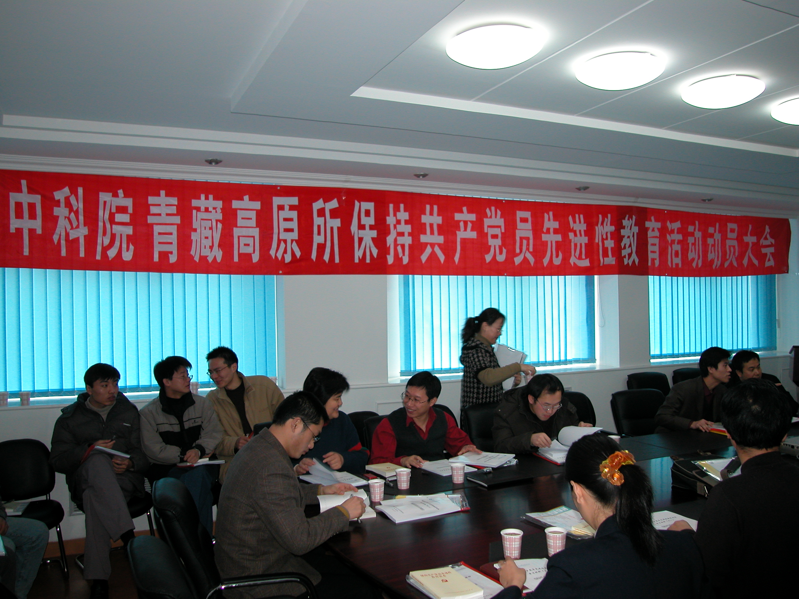 为了全面贯彻中央和我院关于保持共产党员先进性教育活动的精神,青藏高原所于2月28日上午9:00组织全所党员召开了保持共产党员先进性教育活动动员大会,并全面启动先进性教育活动。在所的19名党员参加了会议(其余党员尚在国外考察学习,我们为其寄发了学习材料),此外我们还邀请了部分积极分子以及无党派人士共计6人列席了会议。大会由研究所党委副书记、副所长、所保持共产党员先进性教育活动领导小组组长高星同志主持。