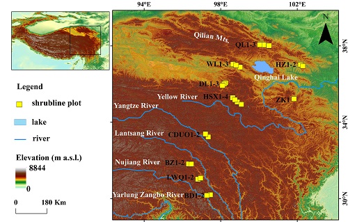 图1 青藏高原山生柳灌木线样地的空间分布图(课题组供图)