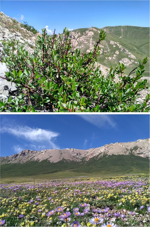 图2 青藏高原山生柳灌木(上)和灌木线(下)景观(课题组供图)