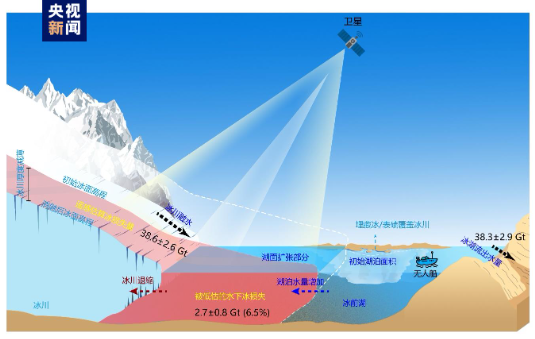 张国庆研究员介绍,数字高程模型(DEM)广泛用于估算全球冰川质量损失。但该方法只能观测到冰川表面和水面,不能揭示发生在冰前湖泊水面以下的冰川质量损失。喜马拉雅地区分布着数以万计的冰湖。在全球变暖背景下,冰川正在加速消融与退缩。与冰川相连的冰前湖迅速扩张,约占该区域冰湖总数量的12%。此前研究更多聚焦于冰湖面积和水量变化,以及由此引发的冰湖溃决洪水灾害风险。然而,在估算冰川的冰量变化时,传统的大地测量法未考虑冰湖扩张引起的水下冰质量损失,导致喜马拉雅地区甚至全球尺度冰川质量损失被低估。