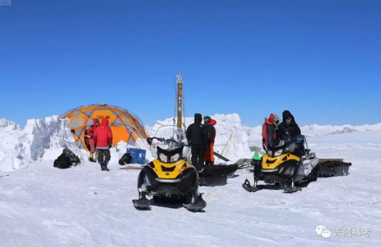 在海拔6700米的古里雅冰帽顶部钻取冰芯
