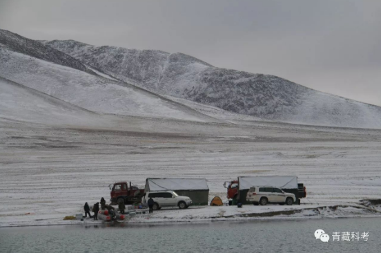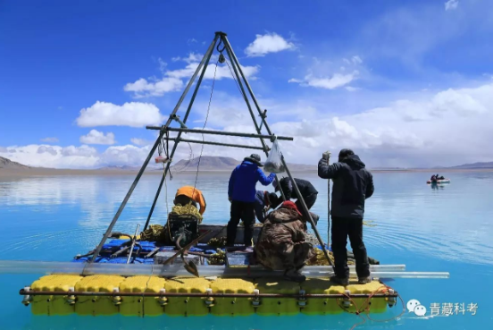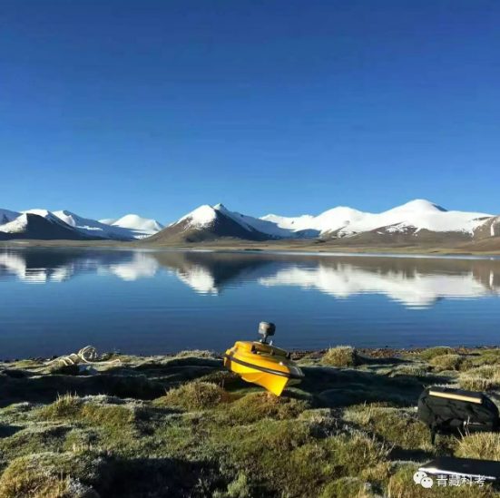 科考无人船在西藏安多县唐古拉冰前湖进行水深测量 海拔5137m