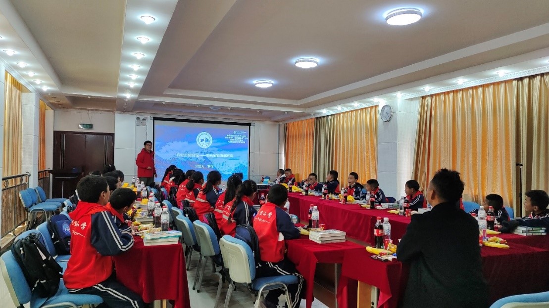 在藏东南站,鲁朗小学师生30余人参与了本次公众科学日活动。观测主管罗伦作了题为《我们的家园——藏东南的自然地理环境》科普报告,介绍了藏东南典型的山峰、森林、湖泊和冰川等地理知识。现场学生们学习了如何计算不同时期冰川末端退缩速度,认识到保护环境的重要性。学生们还参观了藏东南站观测场,获赠了科普读物和学习用具。