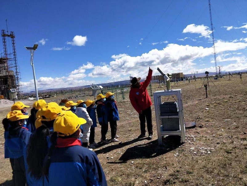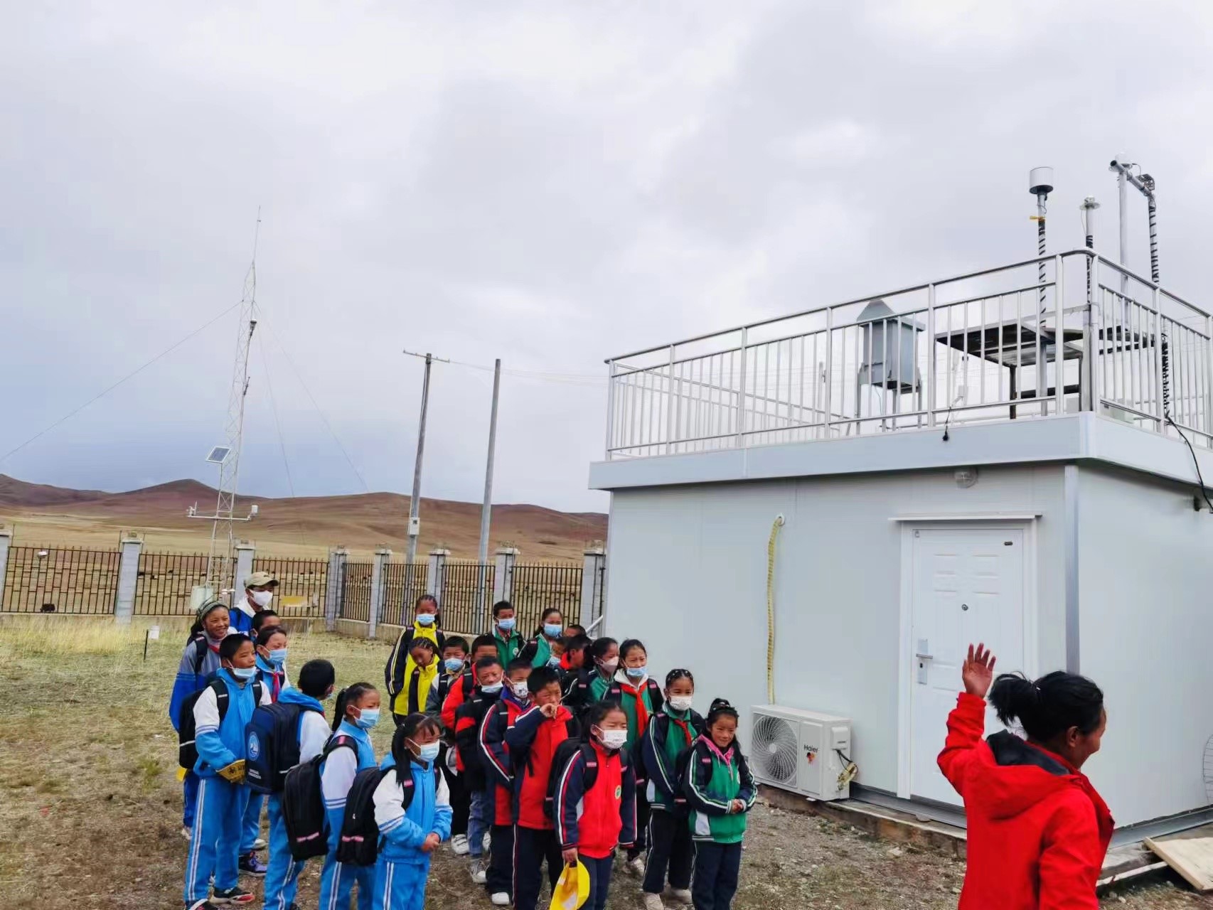 那曲站邀请了那曲市色尼区小学30余名学生和家长来站上做客,组织大家观看了媒体公开课《青藏高原的形成与隆升》(央视王牌节目),了解板块碰撞造就了“世界屋脊”青藏高原。工作人员带领学生参观了台站实验室和科研观测试验场地与设施,介绍了那曲站围绕高寒草地生态系统开展的水、土、气、生等观测内容,引导学生感悟科学魅力,培养科学兴趣和弘扬科学精神。