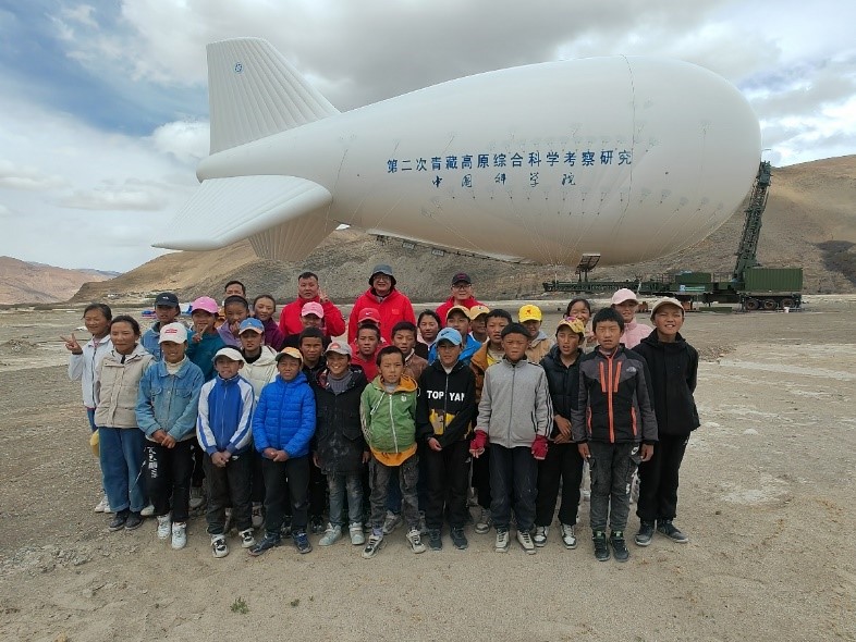 珠峰站邀请了扎西宗小学30名六年级学生参加活动。结合“巅峰使命”2022珠峰科考,刘勇勤研究员以“珠峰为什么常年是白色”开题,详细介绍了珠峰科考,鼓励同学们努力学习科学知识,为青藏高原建设贡献力量。观测主管席振华带领同学们实地参观了观测场,了解观测设备工作原理,近距离看到了刚刚执行完重要科考任务的浮空艇。