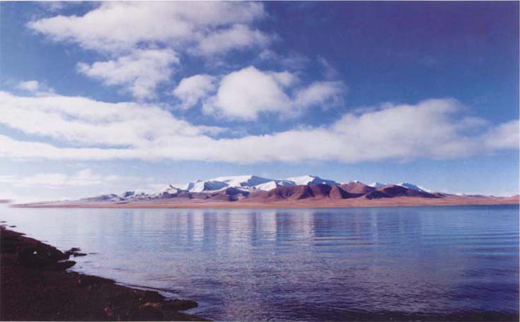 在藏南西端有一对孪生姐妹湖,东面的一个叫玛旁雍错,又称“神湖”,西面的一个叫拉昂错,又称“鬼湖”。神湖海拔4583米、鬼湖海拔4572米。两湖南北高山屹立。南面是巍巍挺拔的纳木拉尼峰,海拔7694米,终年白雪皑皑,冰雪盖顶。北面是冈仁波齐峰。海拔6638米。