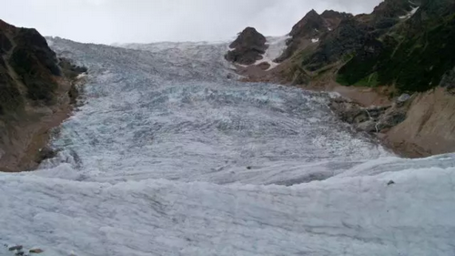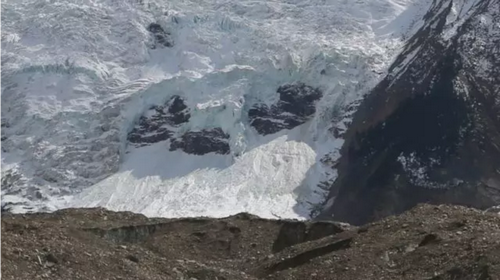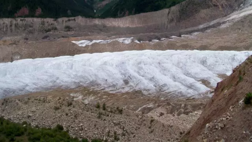 确切的说是被岩石或砂土这些表碛物覆盖了,而表碛物主要来自于两侧山体,还有一些来自冰川底部。