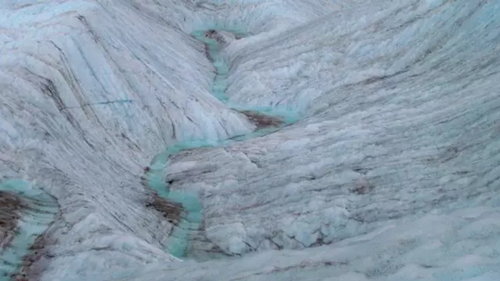 浊浊混流之中依然是有清澈的冰块,红黄光波长相对较大可以进入冰里深处,但是蓝光波长较短被散射了回来,展现出蓝冰的色彩。
