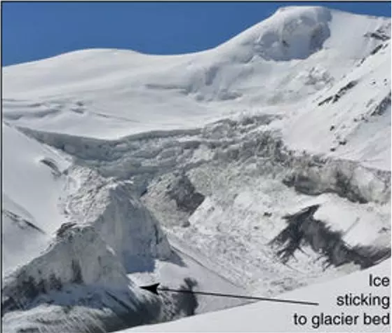 冰崩主要是由于气候变暖,使冰川容易融化、裂开,同时产生移动,继而发生冰崩。