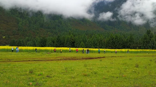 下雨怎么能阻挡我们的脚步,出发去鲁朗小镇,路过一片美丽的油菜花。