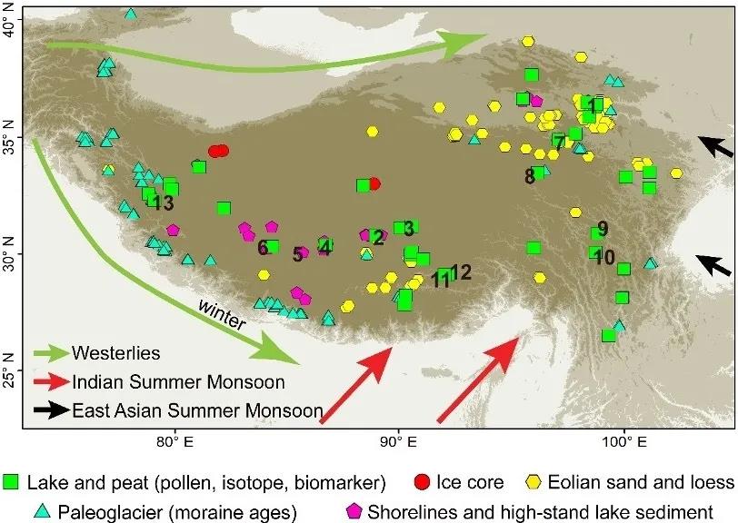该成果近期以“Climate change, vegetation history, and landscape responses on the Tibetan Plateau during the Holocene: A comprehensive review”为题,以“invited review”形式发表于国际地学期刊《第四纪科学评论》(Quaternary Science Reviews)。上述研究获得第二次青藏高原综合科学考察研究专项(2019QZKK0601)及中国科学院A类战略性先导科技专项“泛第三极环境变化与绿色丝绸之路建设”( XDA20090000)的资助。