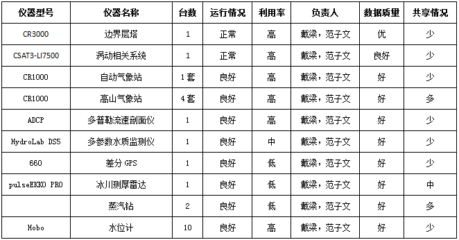 目前阿里站共有科研技术人员24人,其中研究人员18人(包括研究员13人、副研究员5人)、业务支撑人员6人。拥有包括地气边界层水汽交换、气象观测、流速与水位测量、水质测量等各类野外观测仪器22台套,总价值200余万元。“十二五”期间,1名科研骨干获得国家自然科学杰出青年基金,2名科研骨干获得国家自然科学“优青”资助。依托台站申请科研项目15项,获得经费达5000万,共发表包括在Scientific Reports等SCI论文40余篇。依托台站8人完成博士论文,目前有2名博士后、10名博士、5名硕士正在依托台站进行毕业论文研究。