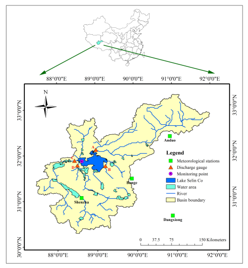 湖泊蓄水量作为水文循环中的重要组分,其变化强烈影响着青藏高原湖泊及其周边流域的水量平衡。近年来,在气候变化的影响下,高原中部湖泊扩张迅速,湖泊扩张及其影响因素受到广泛探讨。入湖径流、冰川融水、湖面降雨及蒸发已被认为是高原湖泊变化的主要影响因素,但关于湖泊扩张主导因子的解释一直存在争议。限于高原湖泊普遍缺乏长期的实地观测资料(入湖径流、湖面蒸发),目前相关研究仍然缺少以模型为主要手段的定量分析。色林错已扩张成为高原第一大内陆湖,定量分析色林错湖泊蓄水量变化及其影响因素对于深入认识其扩张过程和机制有着重要意义。