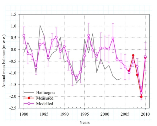 该研究成果近期发表于Climate Dynamics (Yang W, Guo XF; Yao TD, Zhu ML, Wang YJ. Recent accelerating mass loss of southeast Tibetan glaciers and the relationship with changes in macroscale atmospheric circulations. Climate Dynamics. 2015, DOI :10.1007/s00382-015-2872-y)